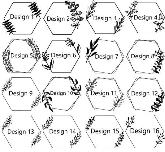Sucre Tags Double side engraved ID name Hexagon Floral Wreath Flower Design Disk personalising engraving pet dog cat tag tags