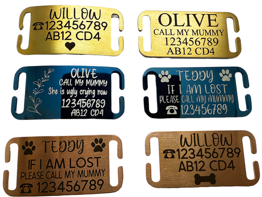 Sucre Tags Flat & Curved Slide On Collar Rectangle ID Name engraved ID name personalising engraving pet dog cat tag -Laser Engraving