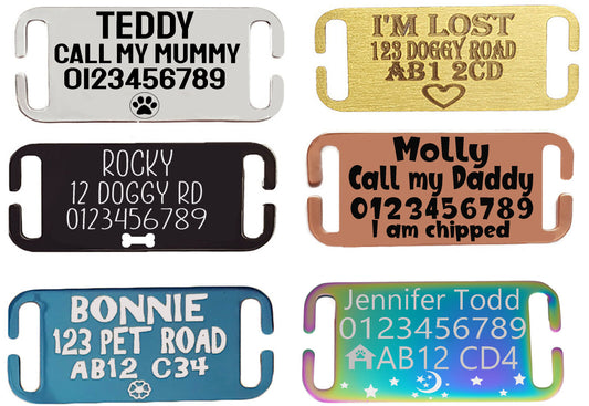 Flat & Curved Slide On Collar Rectangle ID Name engraved ID name personalising engraving pet dog cat tag tags-Laser Engraving
