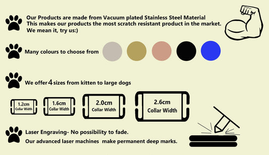 SUCRE Pet Tag Dog Tags for Pets Engraved UK, Slide On Stainless Steel Curved and Flat Personalised Dog Tag, Cat Collar with Name Tag, Dog tag Engraved and Dog Name Tags